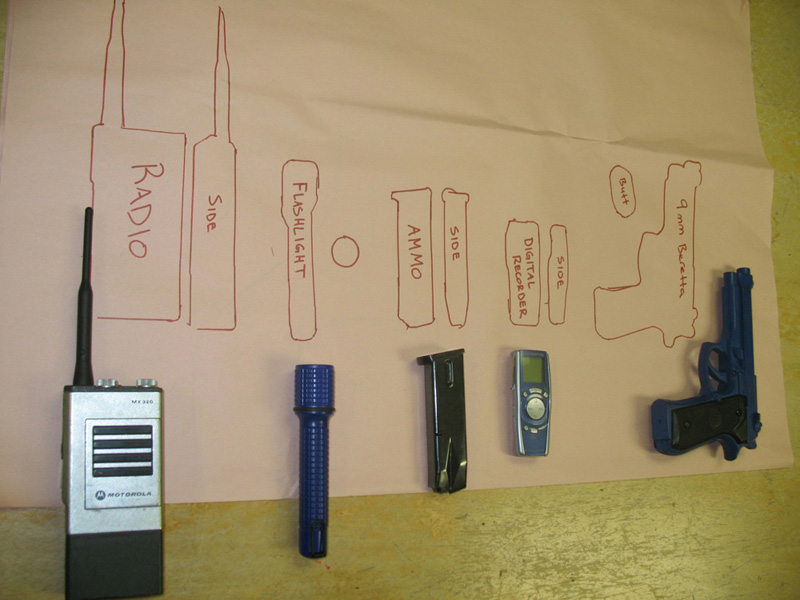 radio, mobile phone, pepper spray, ammo clips, etc.